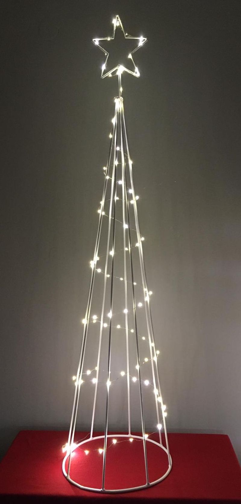 POPIS: Drátěný vánoční strom z drátů s Betlémskou hvězdou na špici. Vhodný nejen do bytů a rodinných domů, ale i jako výzdoba kancelářských a provozních prostor (strom můžete například ozdobit světelným LED drátkem nebo vánočními ozdobami a navodíte si tak příjemnou vánoční atmosféru).